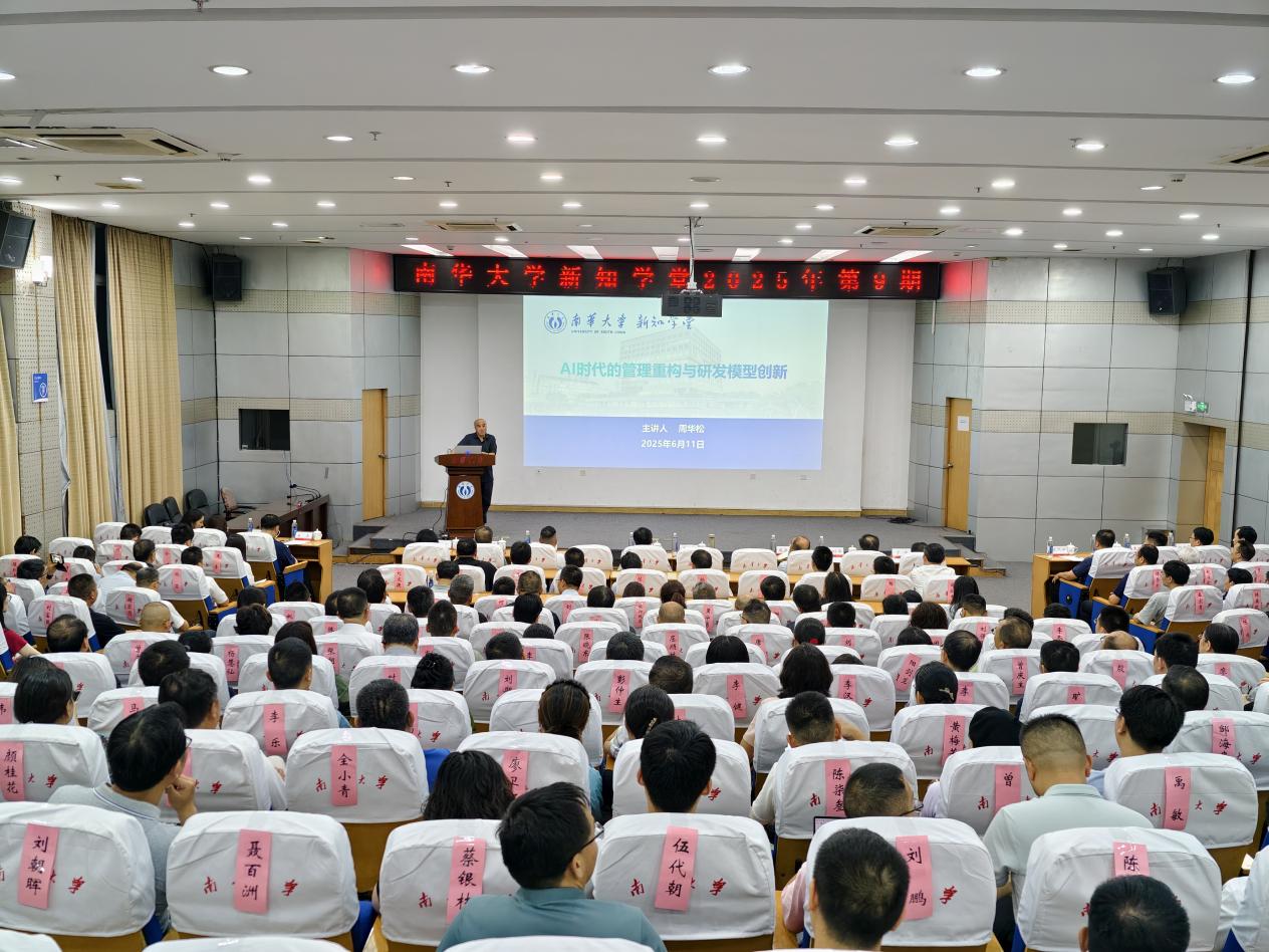 讲座通过学校官方微信视频号平台同步直播。全校中层正职干部,校本部全体副处级干部,第二期青骨班学员代表,创新创业教育与实践中心、松霖建筑与设计艺术学院以及衡阳医学院教师代表参加。