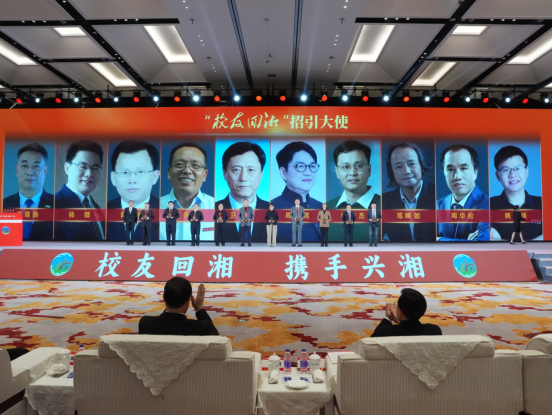 本次大会为鼓励在助力湖南高质量发展、促进“双招双引”等方面做出突出贡献的校友,特设“突出贡献人物”“招引大使”两项荣誉。我校85级校友、深圳市兴森快捷电路科技股份有限公司董事长兼总经理邱醒亚荣获“校友回湘”突出贡献人物称号;85级校友、厦门松霖科技股份有限公司创始人兼董事长周华松荣获“校友回湘”招引大使称号。这充分彰显我校校友的卓越风采与责任担当。