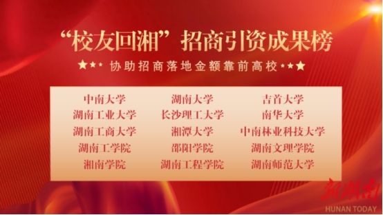 学校党委、行政高度重视校友工作,紧扣省委、省政府“校友回湘”工作部署及“五个+”要求,积极致力于构建校友与母校紧密相连的发展共同体、事业共同体、情感共同体以及荣誉共同体,围绕学校高质量发展,创新工作思路,通过加强组织领导,坚持以联络聚人、以服务聚心、以政策聚力,压实责任,持续推进“校友回湘”工作各项任务落实落地,引导动员校友们聚湘回湘投资兴业,叙友谊、谋合作,为湖南高质量发展聚势蓄能。